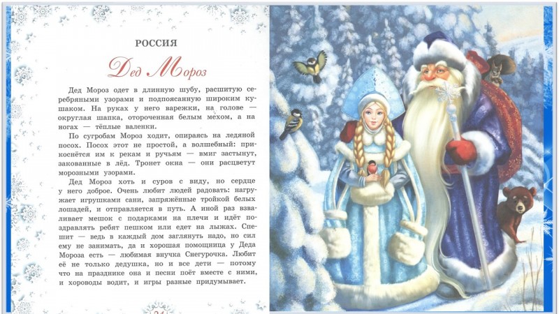 На страницах этого познавательного журнала вы узнаете о друге нашего российского Деда Мороза. Он живёт в Белоруссии и зовут его Дзед Мароз. А также узнаете где он живёт и сколько у него помощников.