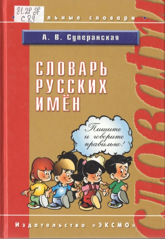 Суперанская, А. В. Словарь русских имён : около 5000 русских имён / А. В. Суперанская. – Москва : Эксмо, 2005. – 443, [3] с. – (Школьные словари).