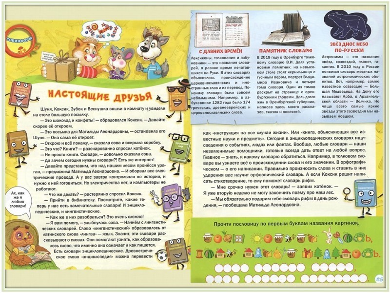 На страницах детского познавательного журнала «Шишкин лес» вы найдёте интересную информацию ко дню словарей и энциклопедий. Прочитав статью, вы узнаете о том, что слово «энциклопедия древнегреческое и его можно перевести как «инструкция на все случаи жизни или «книга, объясняющая все известные науки и предметы». А словари – это наши незаменимые помощники, готовые всегда дать ответ на любой вопрос.