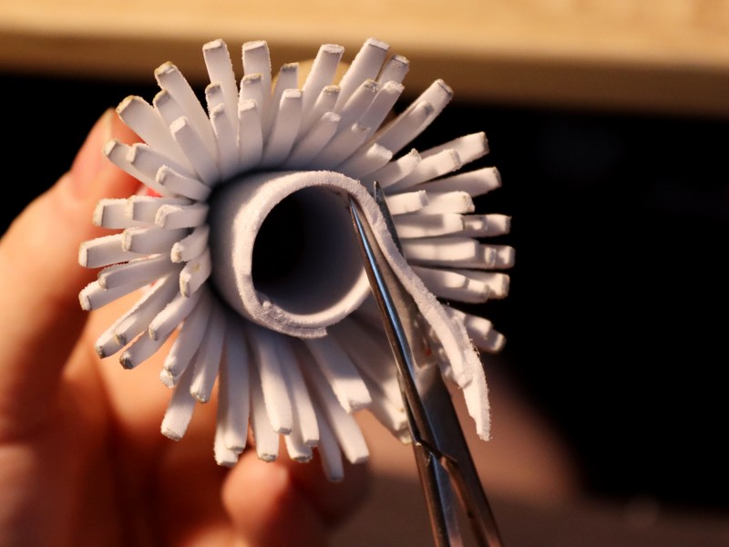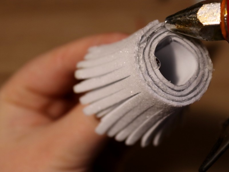 Должен получиться рулончик, вокруг которого мы будем обматывать нашу полоску с надрезами.