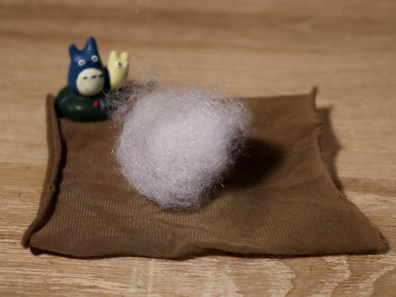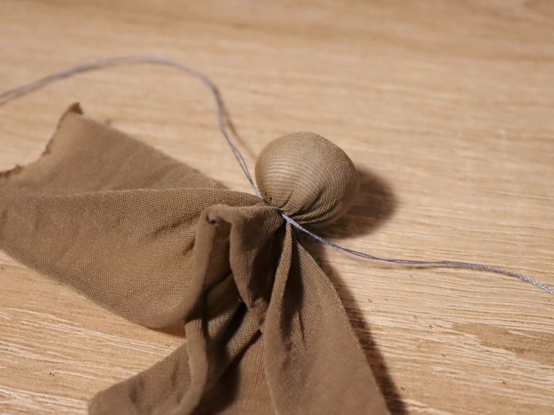 На кусочек нейлона кладем небольшое количество ваты или синтепона и заворачиваем его в нейлон.