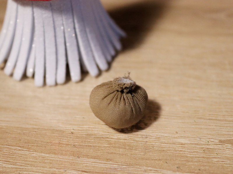 9. Приступаем к изготовлению носа. Нам понадобится: кусочек нейлона, небольшое количество синтепона или ваты, нитки.