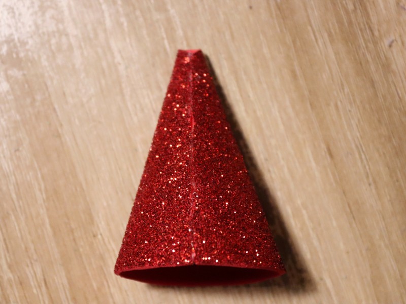 7. Теперь необходимо скрутить полученную фигуру конусом и аккуратно склеить по краям. В итоге должен получиться вот такой колпак.