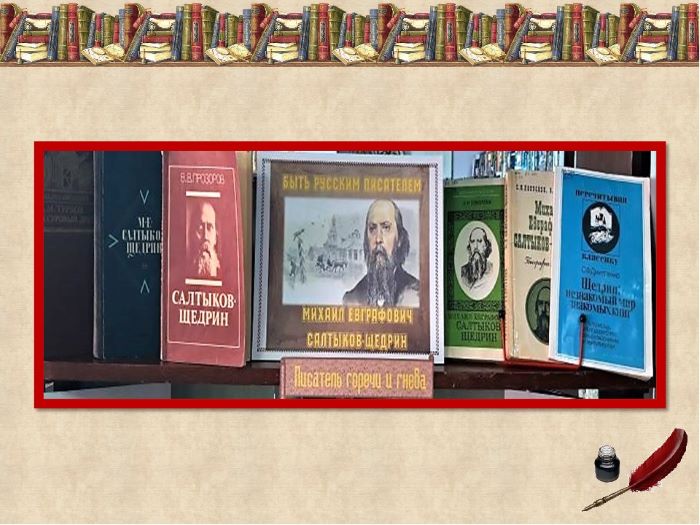Библиотека № 5 подготовила книжную выставку-портрет из цикла «Быть русским писателем» - «Писатель горечи и гнева», посвященную 195-летию величайшего сатирика М. Е. Салтыкова-Щедрина.