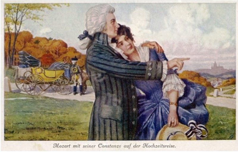 В 1782 году он женился; пришлось заботиться о семье. Он давал уроки и концерты, выполнял заказы на музыкальные произведения. В Вене была поставлена его комическая опера «Бельмонт и Констанца, или Похищение из сераля», а через четыре года другая – «Директор театра», а также «Свадьба Фигаро», по революционно направленной против аристократии пьесе Бомарше «Безумный день». (Как писал Пушкин: «Бомарше влечет на сцену, раздевает донага и терзает все, что еще почитается неприкосновенным… Старая монархия хохочет и рукоплещет. Общество созрело для великого разрушения».) Венские аристократические круги встретили «Фигаро» с прохладцей. Зато на следующий, 1787 год в Праге она имела шумный успех. Для чешской публики он написал оперу «Наказанный распутник, или Дон Жуан», принятую в Праге с не меньшим восторгом и провалившуюся в Вене.