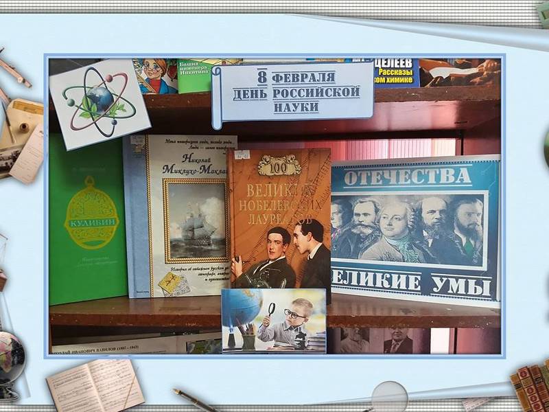В библиотеке № 5 проводится неделя «Да здравствует российская наука!». К этому дню оформлена книжная выставка «Отечества великие умы».