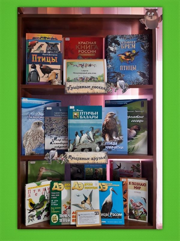 К этому празднику в библиотеке № 5 для детей оформлена книжная выставка «Крылатые соседи! Крылатые друзья!». Ребята познакомятся с литературой о птицах, их защите и охране.