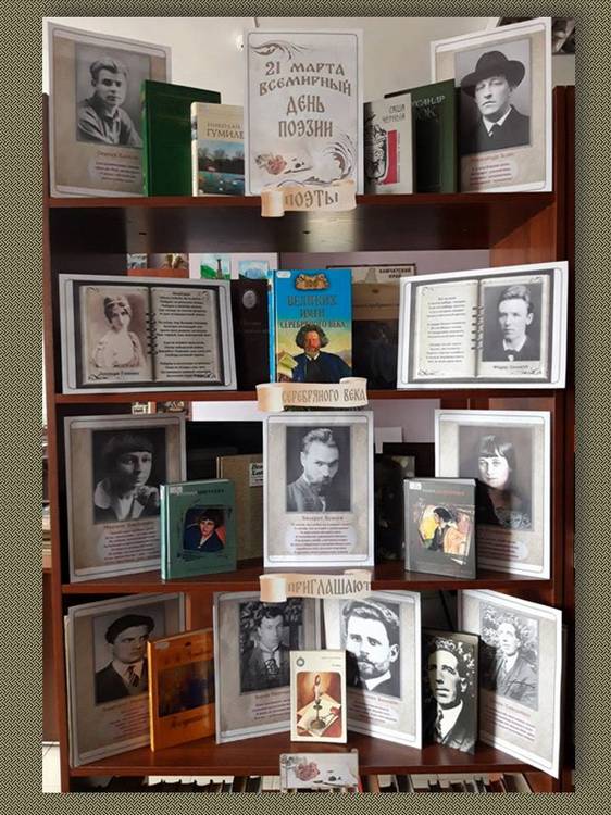 Библиотека № 5 к Всемирному дню поэзии подготовила книжную выставку-портрет «Поэты Серебряного века приглашают».