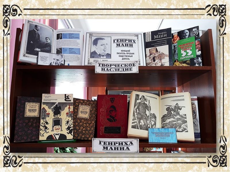 Библиотека № 5 подготовила книжную выставку «Творческое наследие Генриха Манна», посвященную 150-летию немецкого писателя-прозаика, общественного деятеля Генриха Манна.