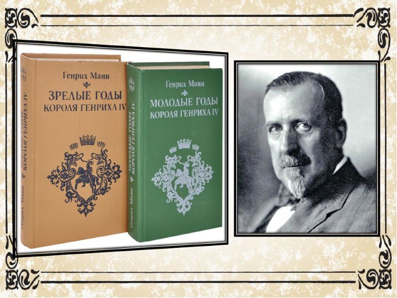 Не приняв власть национал-социалистов, писатель в 1933 году эмигрировал во Францию, с 1936 года он – председатель германского Народного фронта, созданного во Франции. Здесь были написаны направленные против нацизма сборники статей «Ненависть», «Настанет день», «Мужество». Созданная в эти годы дилогия о Генрихе IV – «Юность Генриха IV» (1935) и «Зрелость Генриха IV» (1938) – вершина позднего художественного творчества Генриха Манна.