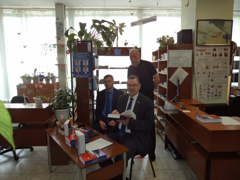 В Библиотеке №1 им. Н.В. Санеева прошла встреча депутатов Законодательного Собрания Камчатского края Агеева Владимира Александровича и Кирносенко Анатолия Владимировича с читателями, приуроченная ко Дню камчатского парламентаризма. Первая сессия Законодательного Собрания Камчатской области начала работу 11 апреля 1995 года, открыв тем самым новую страницу в истории Камчатки. Сессия Законодательного Собрания приняла Закон Камчатского края "О внесении изменения в статью "О праздниках и памятных датах Камчатского края".