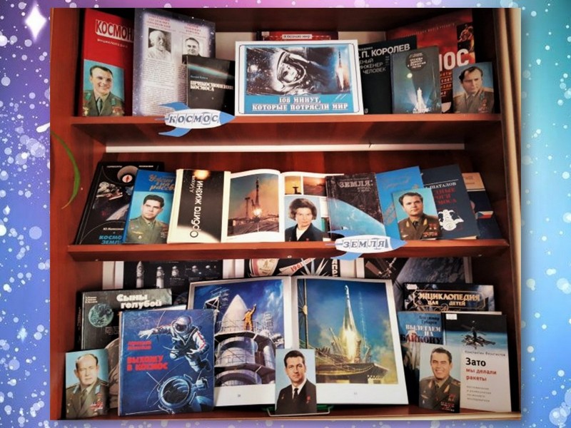Для широкого круга читателей библиотека № 5 провела цикл мероприятий, объединенных одной темой «Книга – путь к звездам»: книжные выставки, беседы и обзоры литературы о космосе, о Ю. Гагарине, об ученых и изобретателях космической техники. Юные читатели смогли проверить свои знания в увлекательной «Космической викторине».