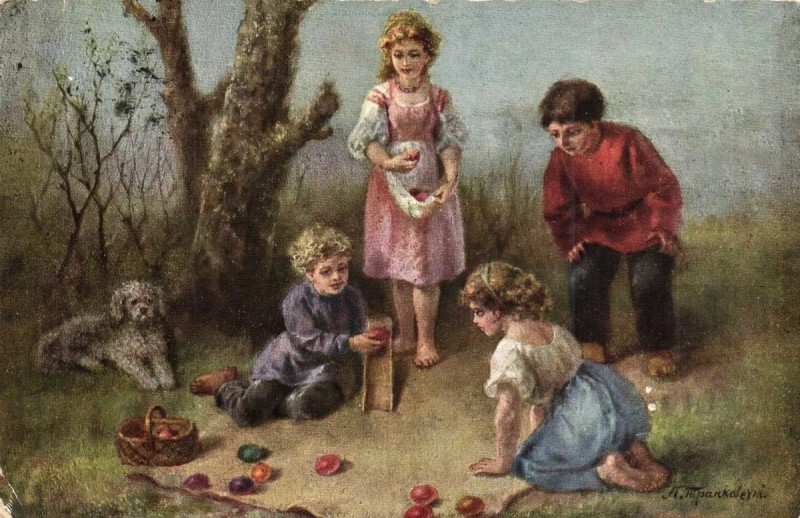 Как всякий праздник Пасха знаменовалась играми и развлечениями. Одна из любимых забав - игра с яйцами.