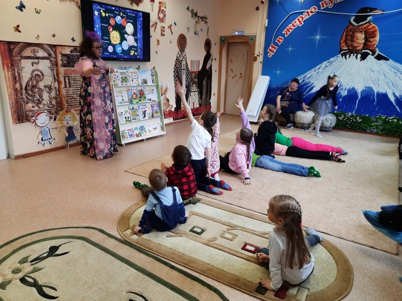 Ребята вместе с ведущей взошли на космический корабль «Мечта» и отправились в межпланетное путешествие на поиски самой волшебной, загадочной и чарующей планеты.