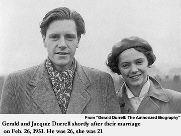 В краткий период между второй и третьей экспедициями в жизни Даррелла произошло одно из самых важных событий. Пристраивая по зоопаркам пойманных животных, Джеральд исколесил всю Британию, и последней точкой в этой круговерти был Манчестер. Именно там он познакомился с дочкой хозяина отеля, которую звали Джаклин Вулфенден.