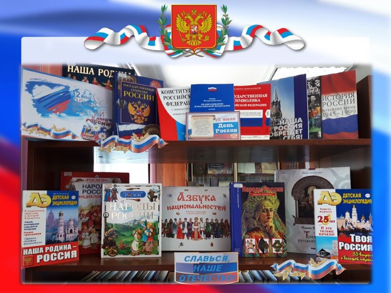Библиотека № 5 подготовила книжную выставку «Славься, наше Отечество!», посвященная Дню независимости России.