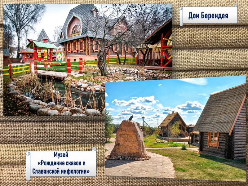 «Музей Берендея» и «Музей Рождение сказки и славянской мифологии» – центры сохранения и развития народных традиций, памятники древнерусской архитектуры. Интерактивные комплексы, посвящены старинной культуре и русскому фольклору.