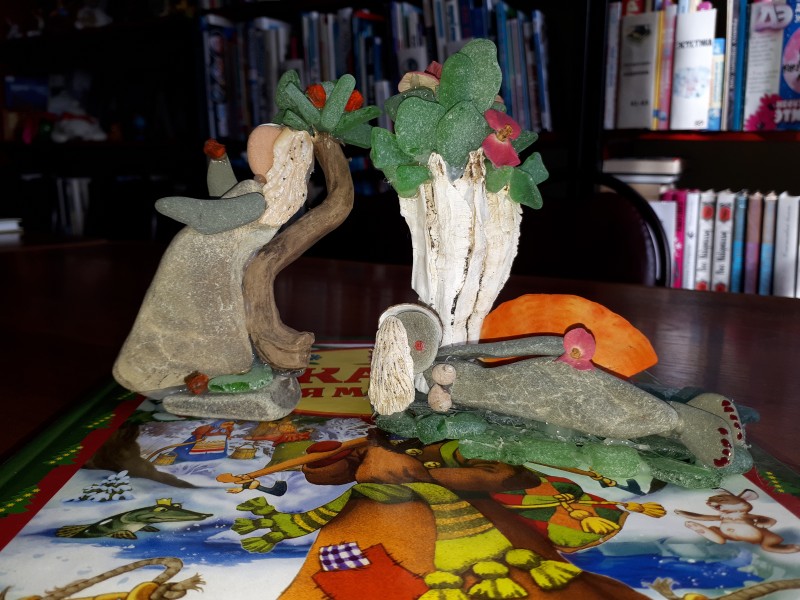 Наша давняя дружба с коллегой, воспитателем детского сада №16 Хабаровой Еленой Анатольевной не перестаёт радовать наших и читателей и пользователей социальных сетей. Снова фонтан творческих идей! Симбиоз персональной творческой выставки работ и книжной выставки «Сказка в камне», организованный в библиотеке №9, поразил своей необыкновенной аурой.