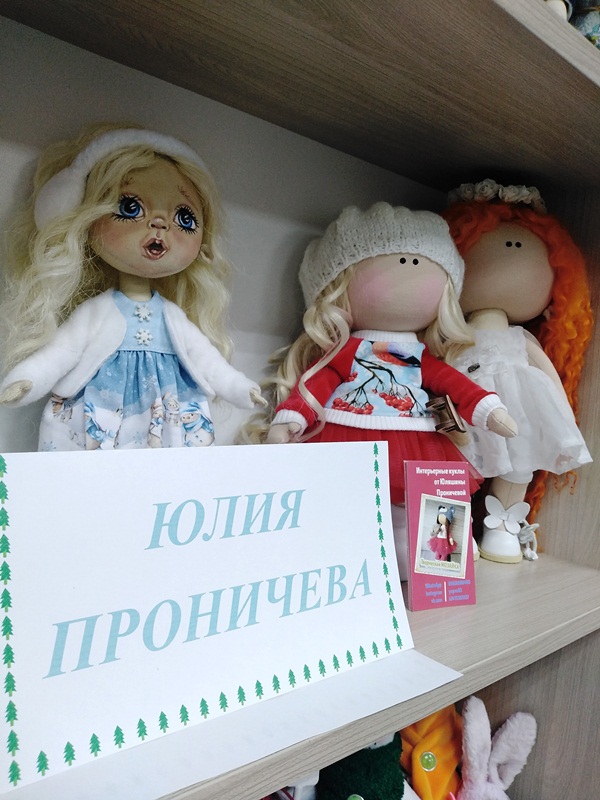Среди читательниц нашей библиотеки много рукодельниц, творением рук которых можно восхищаться бесконечно. На ярмарке были представлены новогодние сувениры и декор ручной работы в различных техниках. Это и авторские куклы нашей читательницы Юлии Проничевой, которая уже неоднократно принимала участие в выставках в нашей библиотеке.