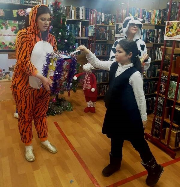 В преддверии праздника они подарили библиотеке новую елку, интерьерные игрушки - символы Нового года, организовали телевизионную съемку одного из «Новогодних променадов». Так же с их помощью для старожилов района СРВ, членов библиотечного клуба «Литературный кинозал», было организовано праздничное чаепитие. Благотворительную поддержку этому мероприятию оказал и директор АО «Петропавловский хлебокомбинат» Вадим Маркович Повзнер. Украсить к празднику Детский отдел помогла индивидуальный предприниматель Елена Владимировна Ситникова.