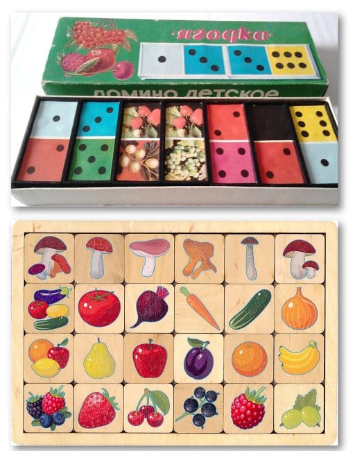 В послевоенное время вернулись лото и домино, которые в СССР после революции не одобрялись. Теперь они стали семейными играми, появились обучающие игры для малышей: лото «Фрукты и овощи», домино «Ягодка». Сегодня для ребят существует огромное разнообразие домино с различными изображениями.