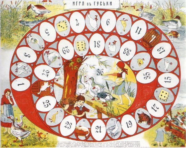 Первая похожая на сегодняшнюю игра-бродилка появилась еще в ХVIвеке и называлась «Гусь». Суть игры в том, чтобы игроки поймали гуся. Выигрывает тот, кому удается быстрее всех дойти до финиша. Позже такие игры назывались «Гусёк», потому что фишки выстраивали на поле гуськом.