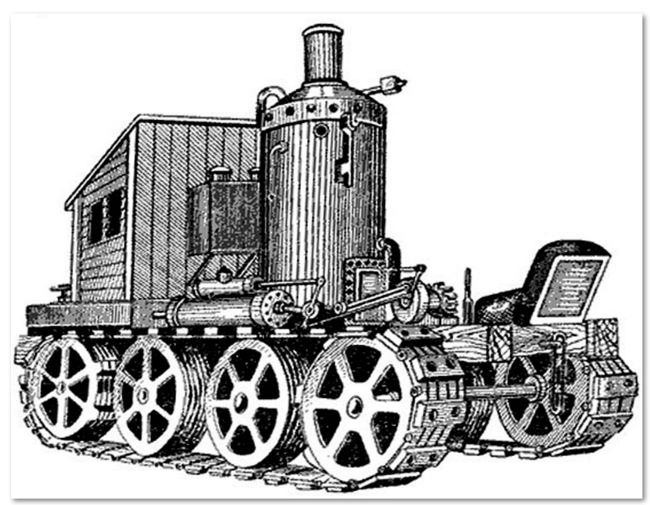 Паровой гусеничный трактор с металлическими гусеницами
