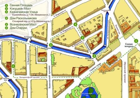 «Преступление и наказание» называют самым топографически точным романом Достоевского. Петербург – это единственный город в России, который строился по плану, это город прямых перспектив и чётких архитектурных очертаний. Петербург, изображённый в произведениях Достоевского – совсем не тот парадный Петербург, город дворцов и садов, который видим мы, приезжая сюда. Герои романа «Преступление и наказание» живут около набережной канала Грибоедова, который тогда назывался Кривушей или Канавой. Извилистая Кривуша, переулки с множеством тупиков – это способ изображения характеров героев и их сложных судеб.