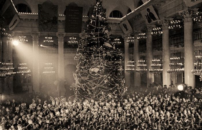 После революции в начале 1920-х годов, в эпоху борьбы с «пережитками прошлого», празднование Рождества и Нового года было запрещено. Производство елочных игрушек прекратили. И только с 1935 года комсомольским организациям поручили устраивать для детей новогодние ёлки. Главной стала ёлка в Колонном зале Дома союзов. Огромные ели с красными звездами на верхушках устанавливались на улицах, украшенных праздничной иллюминацией.