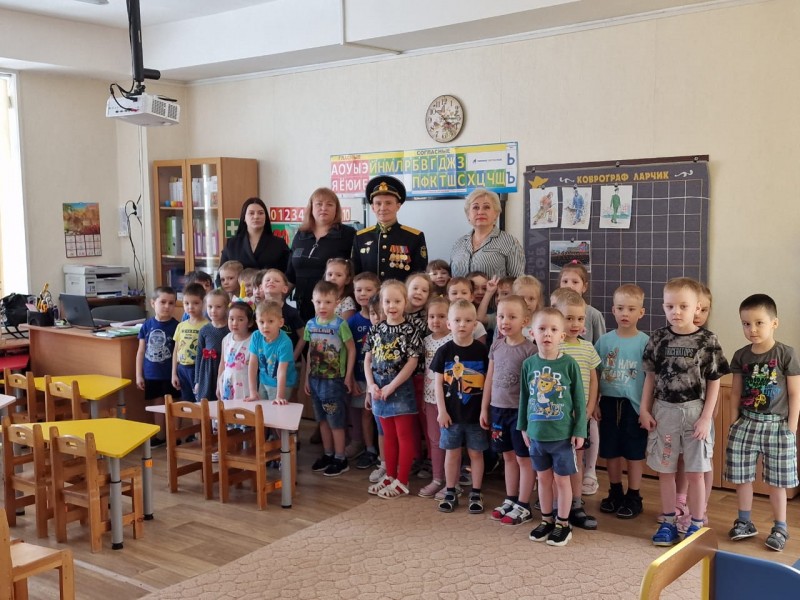 Дошколят из детского сада №1 ждала встреча с настоящим военным, офицером-подводником. Он рассказывал будущим защитникам о своей профессии, о кораблях, охраняющих рубежи Родины, делился интересными историями из военной жизни.