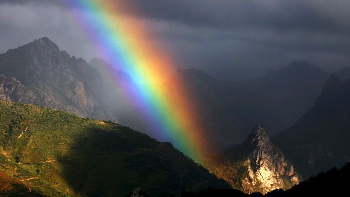 А как эта красота рождается? Оказывается, без воды и тут не обошлось. Многоцветная радуга появляется на небе, когда солнце освещает пелену падающего дождя. Наблюдатель при этом должен находиться между солнцем и дождём, иначе он ее не увидит. Солнечный свет(белый) преломляется, как в призмах, в каплях дождя и разлагается на спектр. Мы видим семь ярких цветов – от красного до фиолетового. А последовательность цветов (красный, оранжевый, жёлтый, зелёный, голубой, синий, фиолетовый) можно легко запомнить по первым буквам слов предложения: «Каждый охотник желает знать, где сидит фазан».