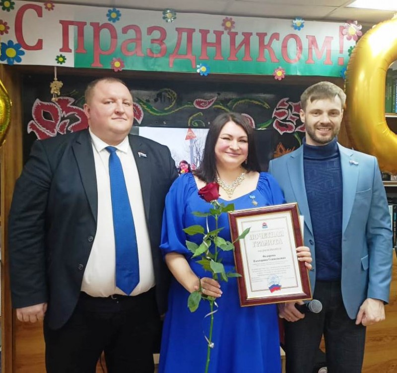 После теплых слов пожелания благополучия и здоровья, специалисты библиотеки получили Почетные грамоты, благодарности и цветы.