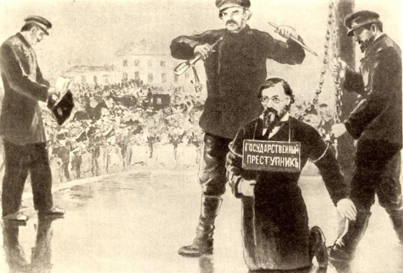 В 1864 году Николаю Гавриловичу объявили приговор: 14-летняя каторга в Сибири и пожизненное поселение там же. По личному пожеланию императора каторжный срок был уменьшен вдвое, однако в итоге писатель провел в ссылке 19 с лишним лет. Гражданская казнь Чернышевского – унизительное наказание в виде публичного лишения всех чинов и привилегий – состоялась 19 мая 1864 года на Конной площади Санкт-Петербурга.