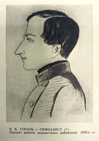 Николай рано покинул родительский дом. В 1818 году вместе с братом Иваном поступает в Полтавское уездное училище. Но отец вскоре забирает сыновей оттуда – учителя оказались не только малообразованными, но и совершенно безразличными к своим воспитанникам. В мае 1821 года Гоголь поступает в только что открывшуюся Нежинскую гимназию высших наук. Она выгодно отличалась от других гимназий «высшей степенью преподаваемых в ней предметов и особенными ей дарованными правами и преимуществами», как говорилось в уставе лицея. Трудно привыкал Николай к гимназии. Общению с одноклассниками он предпочитал одиночество. Любимыми его местами стали лицейский сад, где он любил рисовать и мечтать; спальная комната и, конечно, лицейская библиотека, где юноша проводил все свое свободное от занятий время. Ее хранителем и душой был Гоголь. Выдача книг здесь рассматривалась как поощрение и представляла своеобразный ритуал. Ученик усаживался рядом с Гоголем, главным библиотекарем, на скамейку и не имел права вставать до окончания работы над томом. Перед тем как выдать книгу, Николай предлагал ее читателю надеть бумажный наперсток на указательный и большой пальцы, чтобы сохранить общественные книги как можно дольше.