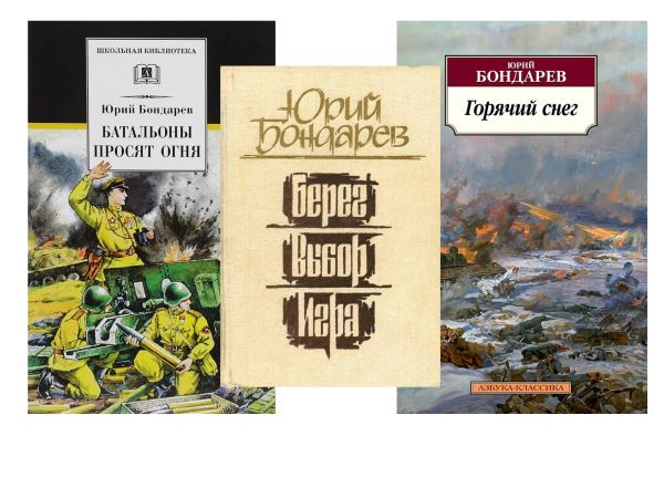 В 1945 году после очередного ранения Ю. Бондарев демобилизовался. Сам писатель вспоминает: «Всю войну стрелял по танкам. До сих пор чувствую запах горячих гильз и горелой брони». Первые рассказы появились в печати в 1949 году. Писатель считал, что о войне должны писать те, «кто слышал треск пулеметных очередей над головой и не единожды ощущал боль потерь». В 1957 году вышла в свет повесть «Батальоны просят огня» и сразу стала классикой отечественной военной прозы. Отдавая долг памяти тем, кто навсегда остался в засыпанных окопах, на полях сражений, писатель создал повести «Юность командиров», «Последние залпы», роман «Берег».