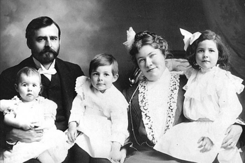 Маленький Эрни в центре со своими родителями, братом и сестрой