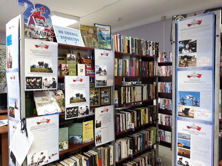 Ежегодно, в преддверии Дня защитника Отечества, в библиотеке №5 начинает работу выставочно-информационный стенд «На службе Отечест...