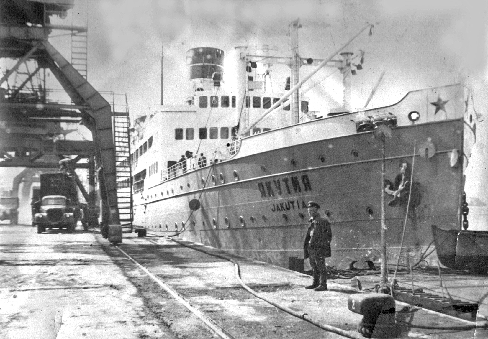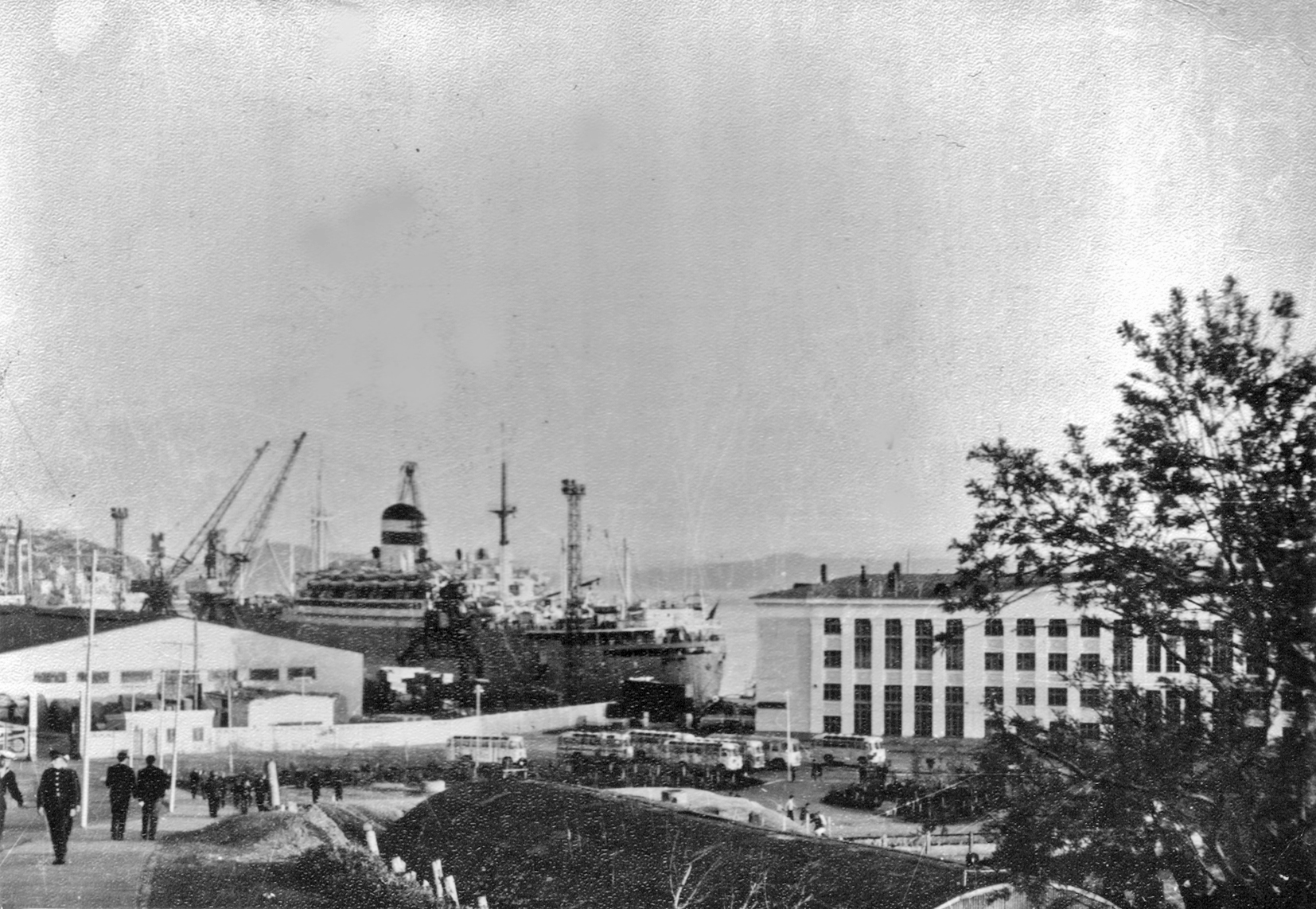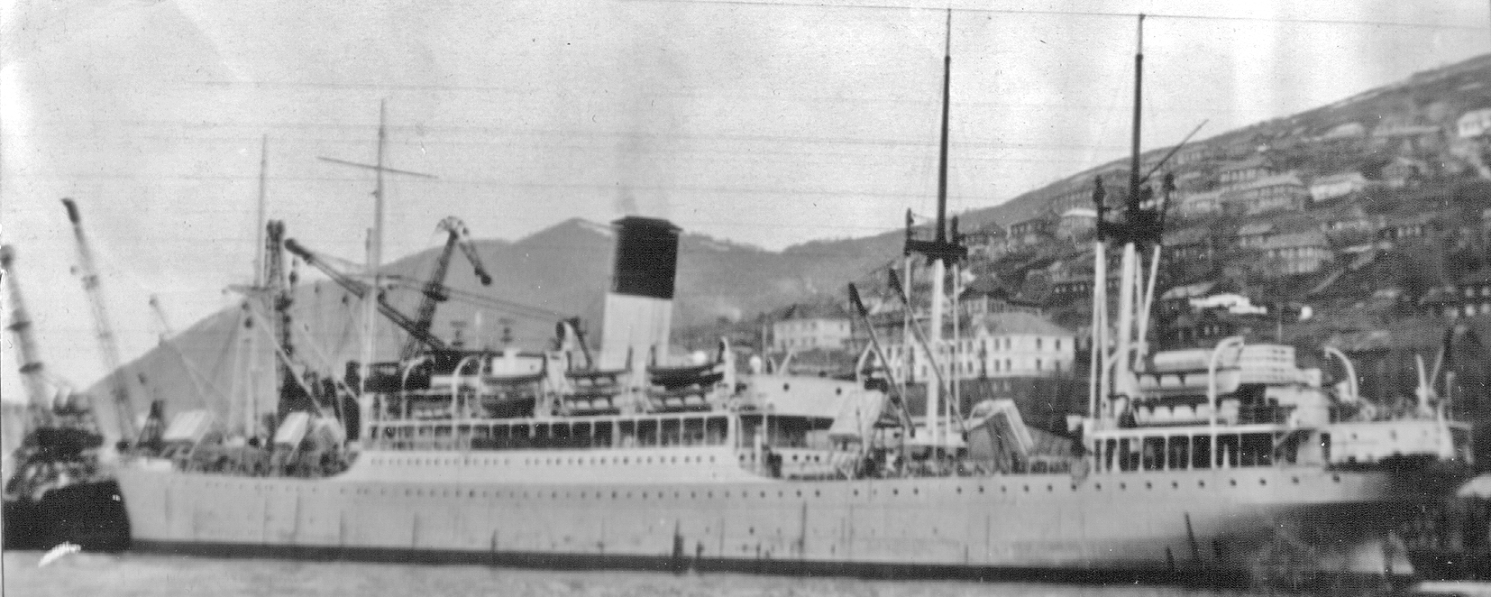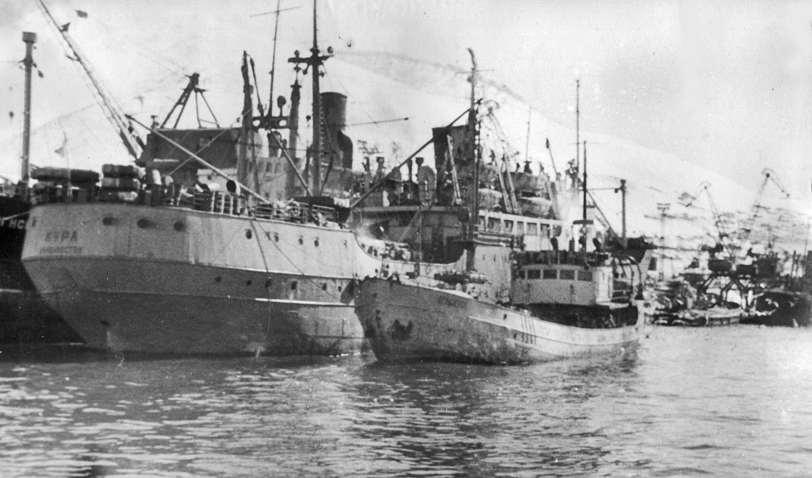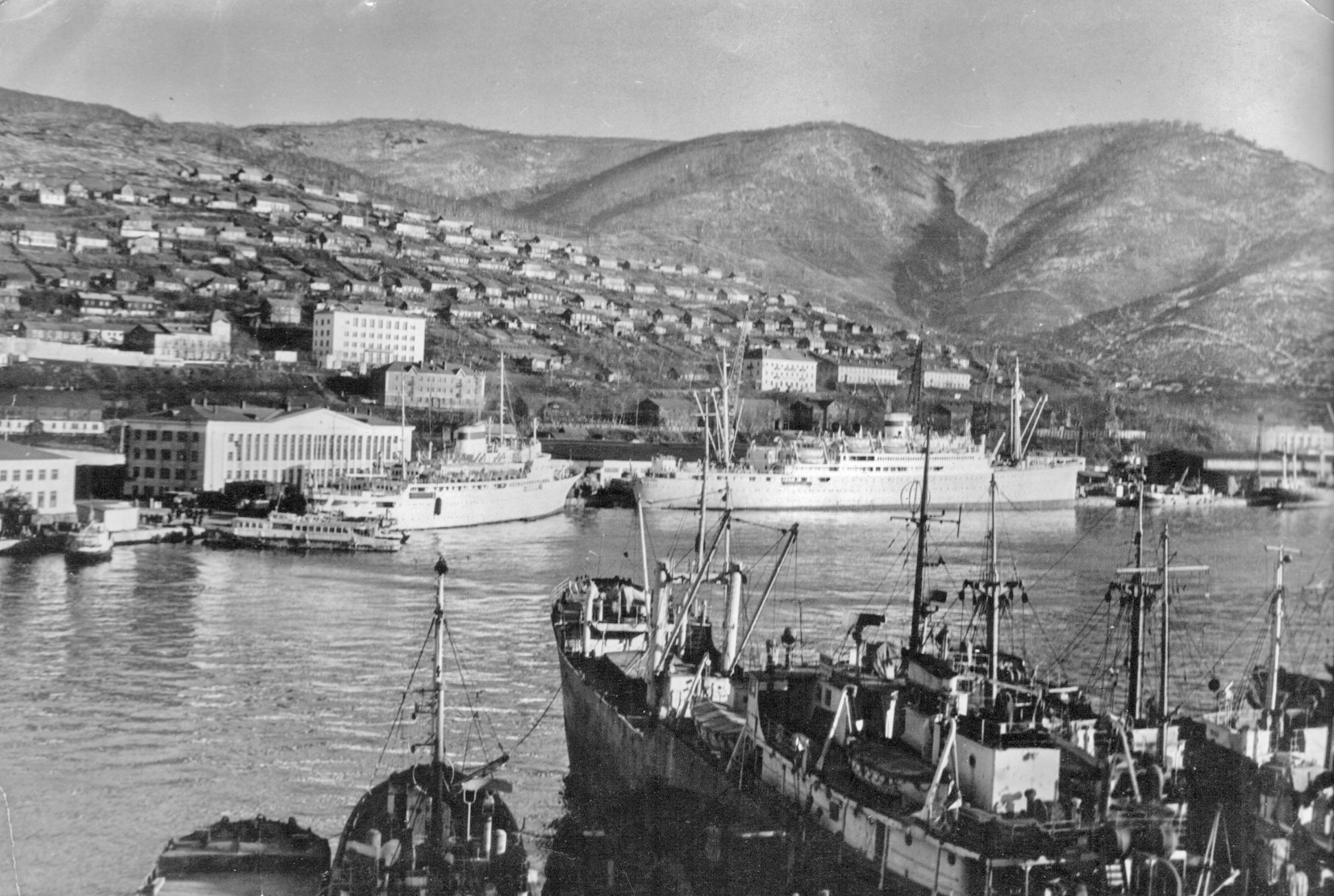 3. Пароход "Брянск" типа "Либерти" в Петропавловске. Построен в 1944 г. в США для перевозки грузов по ленд-лизу. (Тому самому, по которому тогда возили снабжение и вооружение для Красной Армии во время войны с нацизмом. А вовсе не тому ленд-лизу, объявленному недавно нашими былыми союзниками для помощи потомкам тех самых недобитых нацистов.) Принадлежал ДВГМП, затем передан в распоряжение Дальрыбы (из собрания А. А. Пирогова)