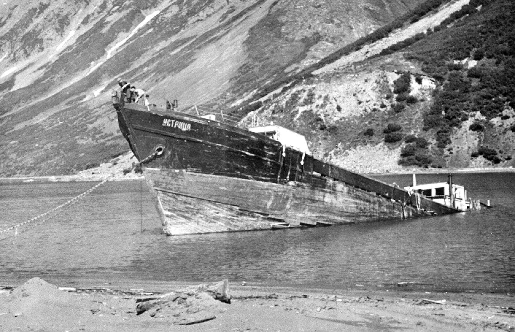 41. Шхуна Камчатрыбфлота "Устрица" в бухте Лаврова, август 1961 г. (из собрания Г. Б. Рогозина)