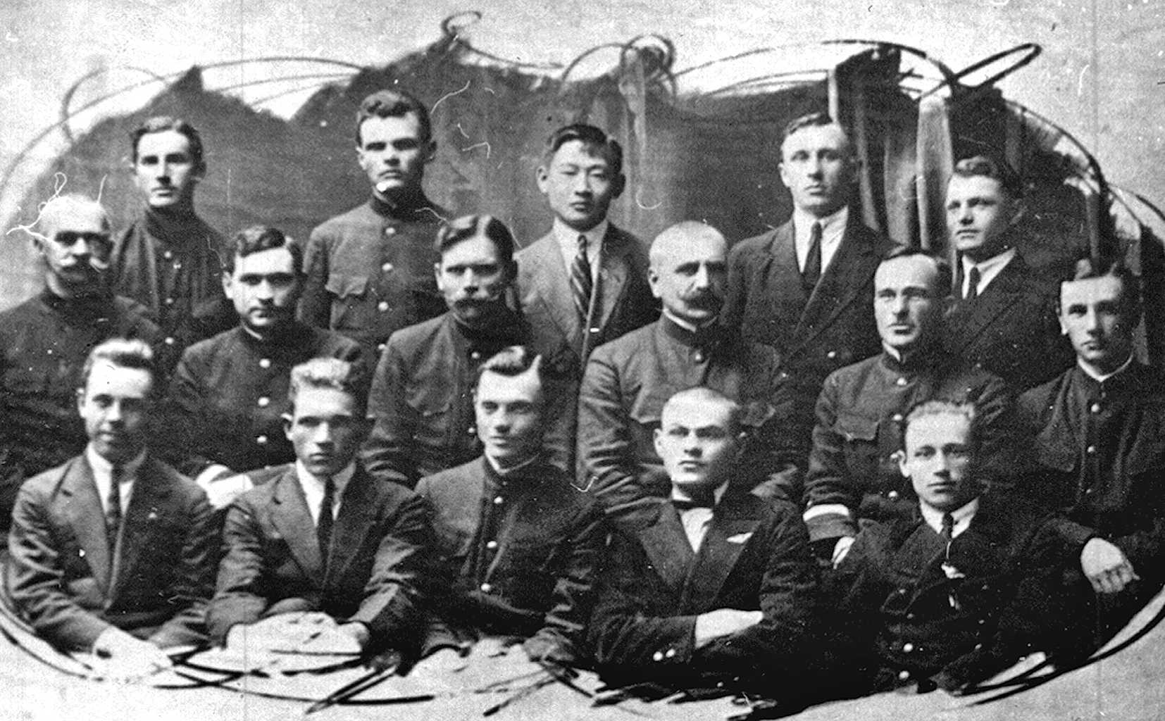 187. Выпускники Владивостокского техникума водных путей сообщения (бывшее Александровское училище дальнего плавания). В первом ряду в центре — А. Е. Миронов, 1925 г. (из собрания Т. М. Кривоногова)