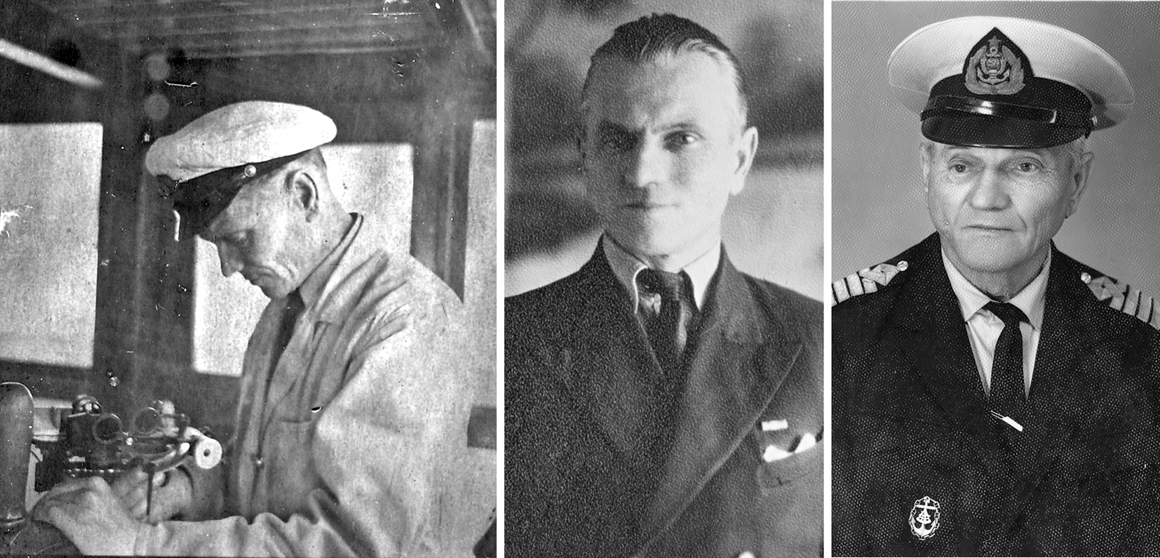 191. Слева — капитан танкера АКОфлота «Херсонес» А. Е. Миронов, 18 июля 1948 г. В центре — А. Е. Миронов 6 февраля 1949 г. Справа — А. Е.Миронов 9 июня 1970 г. (из собрания Т. М. Кривоногова)