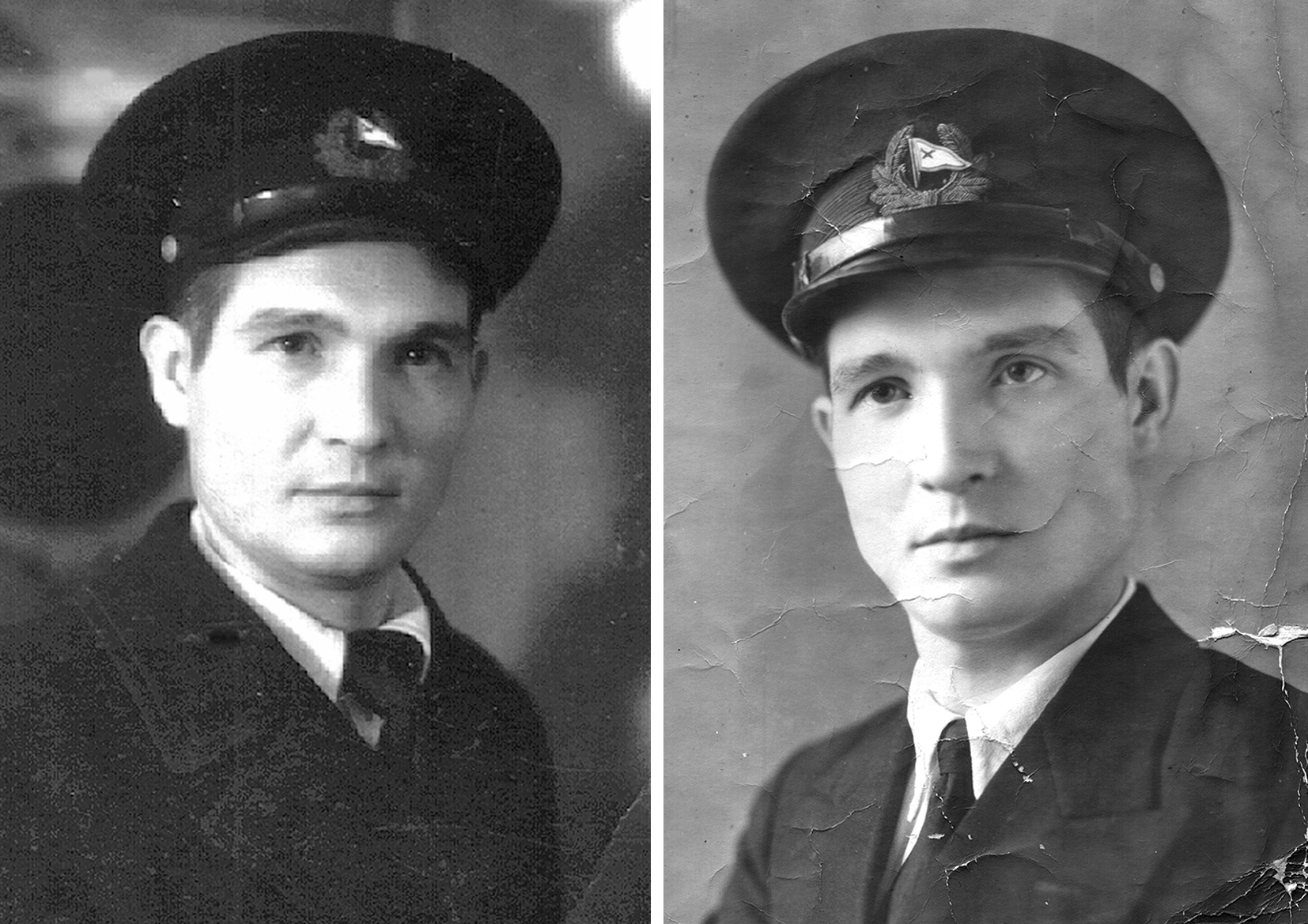 193. Слева — Тимофей Михайлович Кривоногов, штурман парохода «Якут» Камчатрыбфлота, 1948 г. Справа — он же, молодой капитан парусно-моторной шхуны, начало 1950-х гг. (из собрания Т. М. Кривоногова)