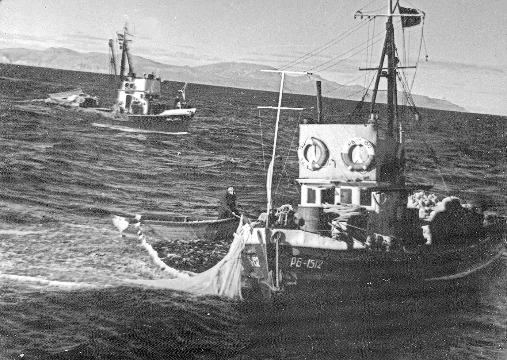 109. Рыболовные боты РБ-80 на промысле (из собрания Ю. А. Моисеева)