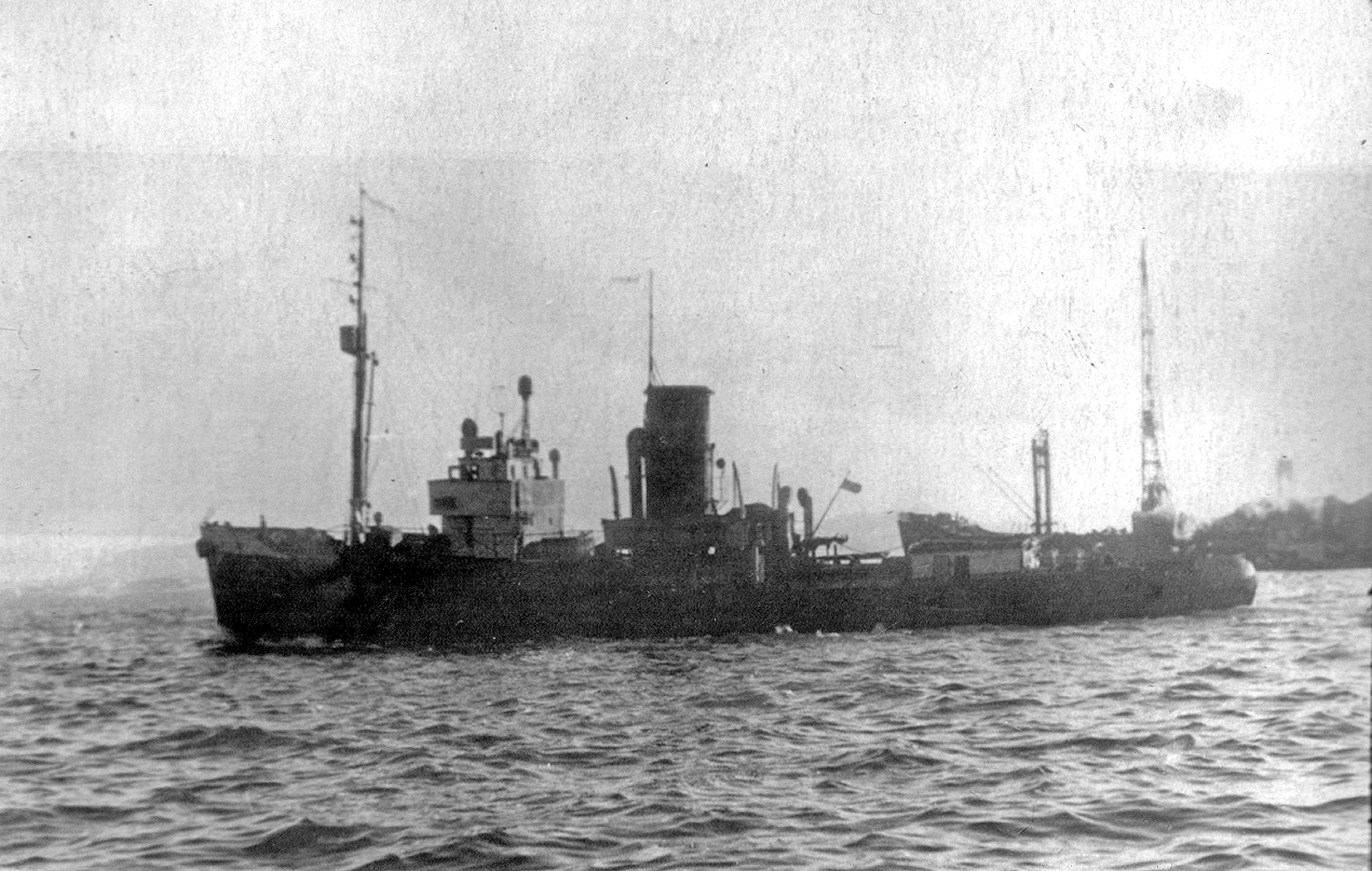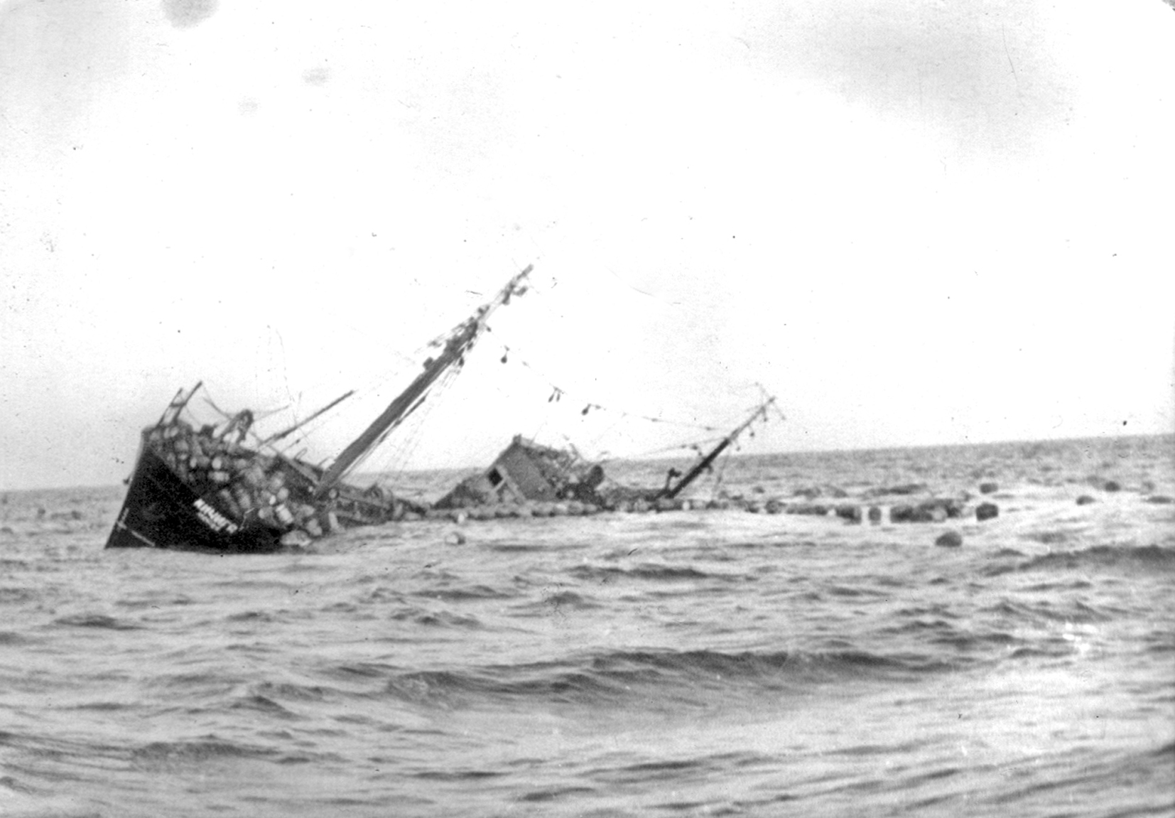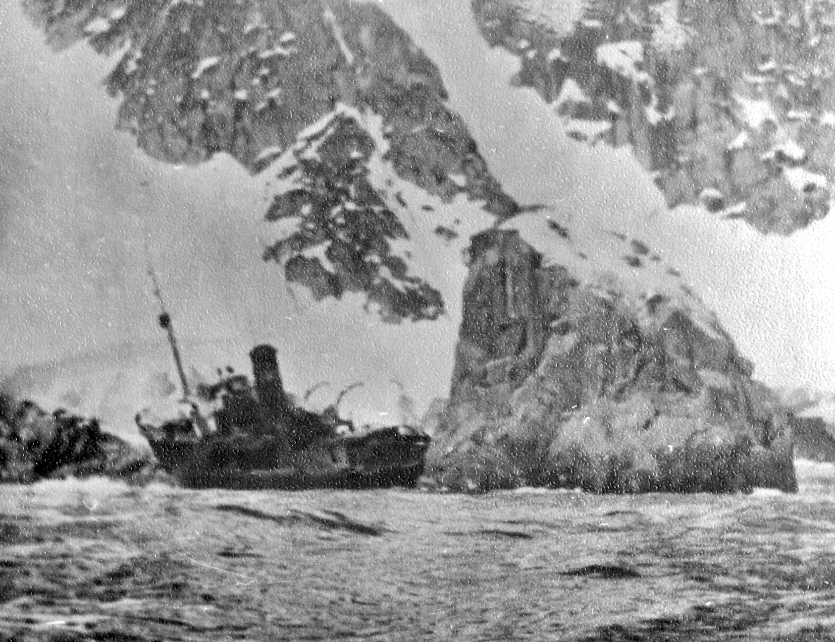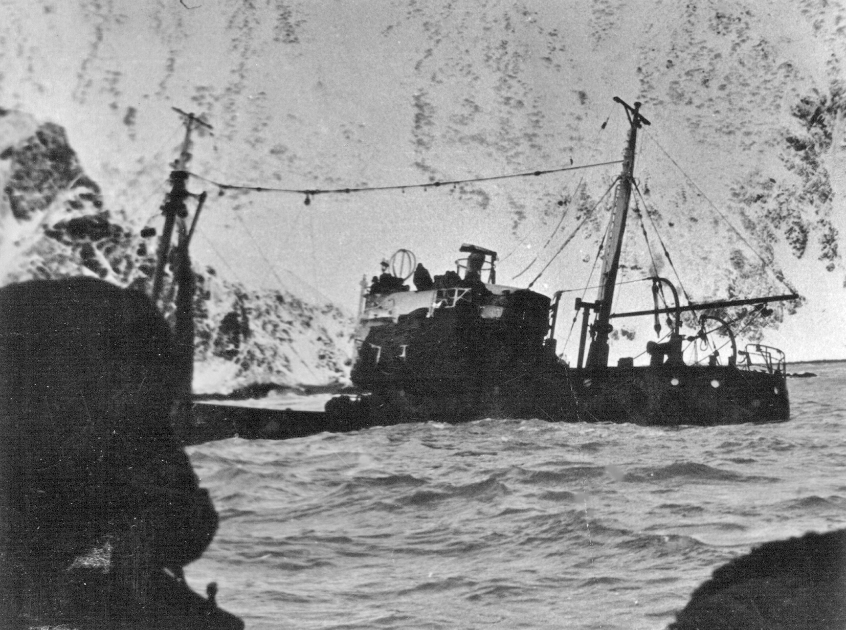 90. СРТ, затонувший слева от входа в бухту Лаврова (из собрания Ю. А. Моисеева)