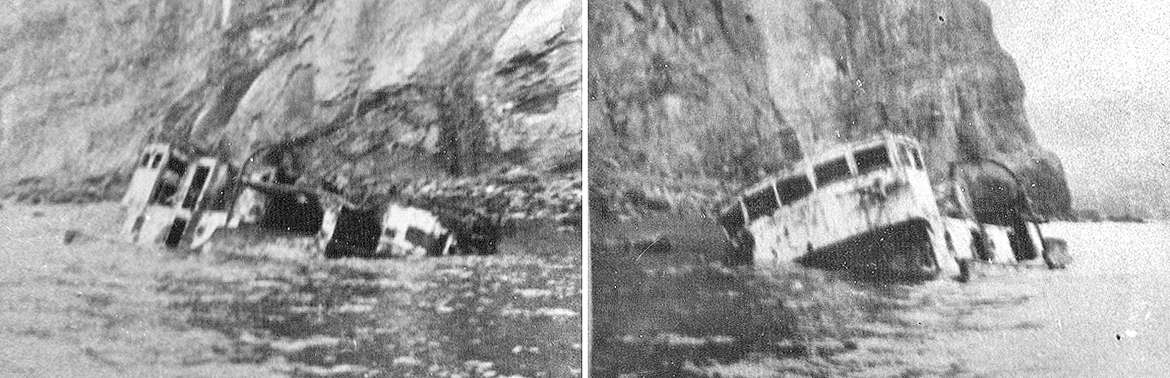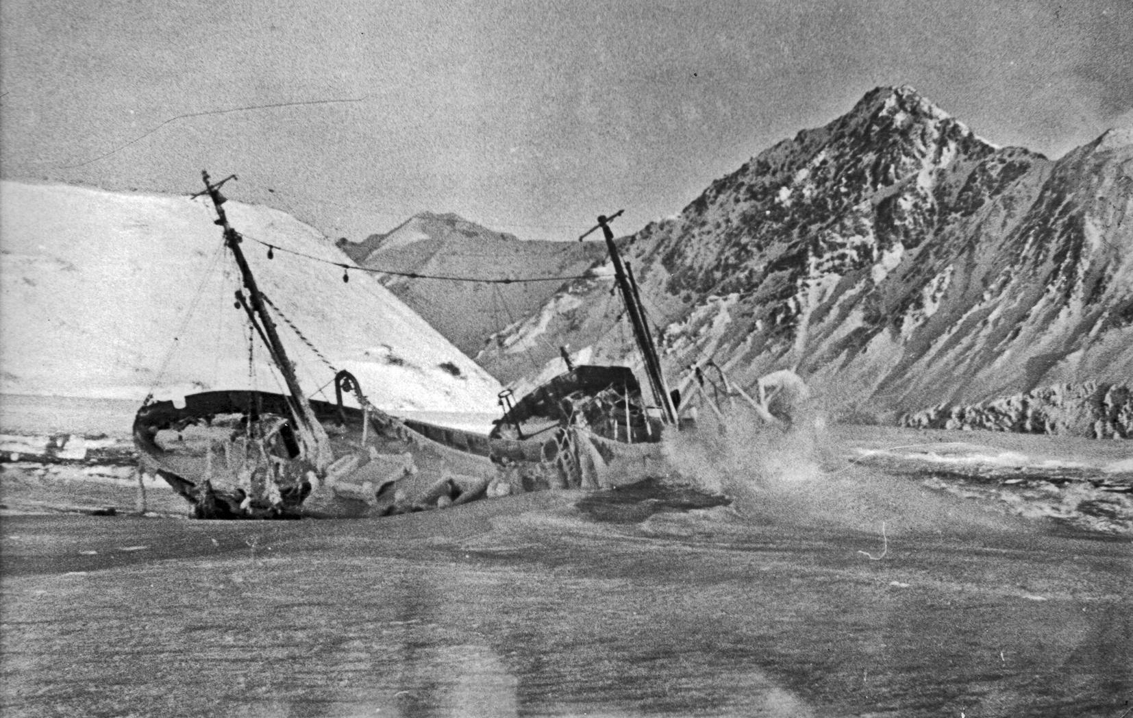 92. Гибель парохода "Капитан Чириков" (построен в 1949 г.) в бухте Ольга (Кроноцкий залив) 13 апреля 1953 г. (из собрания Ю. А. Моисеева)