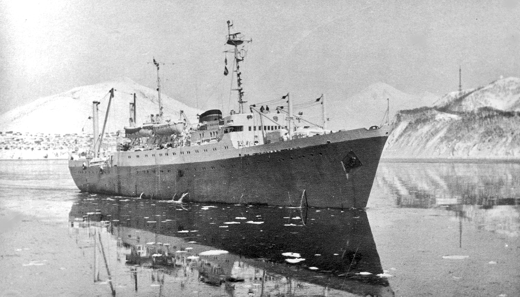 126. Пароход "Якут" в бухте Лаврова, декабрь 1958 г. (из собрания Ю. А. Моисеева)