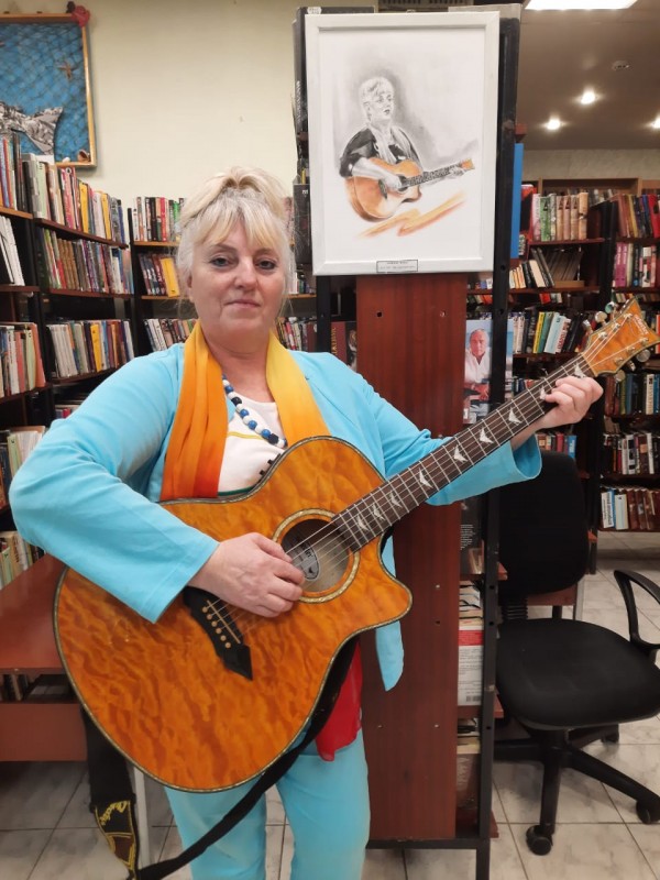 | О. Королькова у своего портрета и ее неизменная спутница - гитара | О. Яворская в завораживающем танце... |