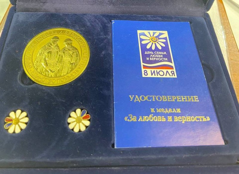 *Медаль "За любовь и верность" вручается супружеским парам, прожившим в любви и согласии не менее 25 лет,получившим уважение среди сограждан и воспитавшими детей достойными члена общества. Награду учредил оргкомитет по проведению Дня семьи, любви и верности. На одной стороне медали изображены святые Петр и Феврония, на другой - ромашка.