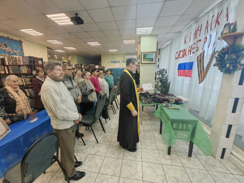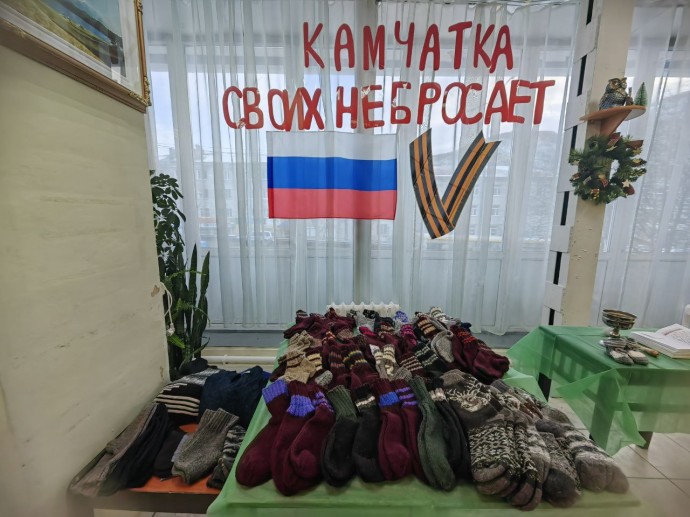 Теплые носки из натуральных материалов, связанные с любовью для наших земляков, мобилизованных с Камчатского края, освятил священник Собора Святой Живоначальной Троицы Роман Никитин, а учащиеся общеобразовательной школы № 6 им. Л.П. Лельчука передали письма с новогодними поздравлениями и пожеланиями вернуться с победой, живыми и невредимыми. Мероприятия по патриотическому воспитанию подрастающего поколения - приоритетное направление работы библиотеки.