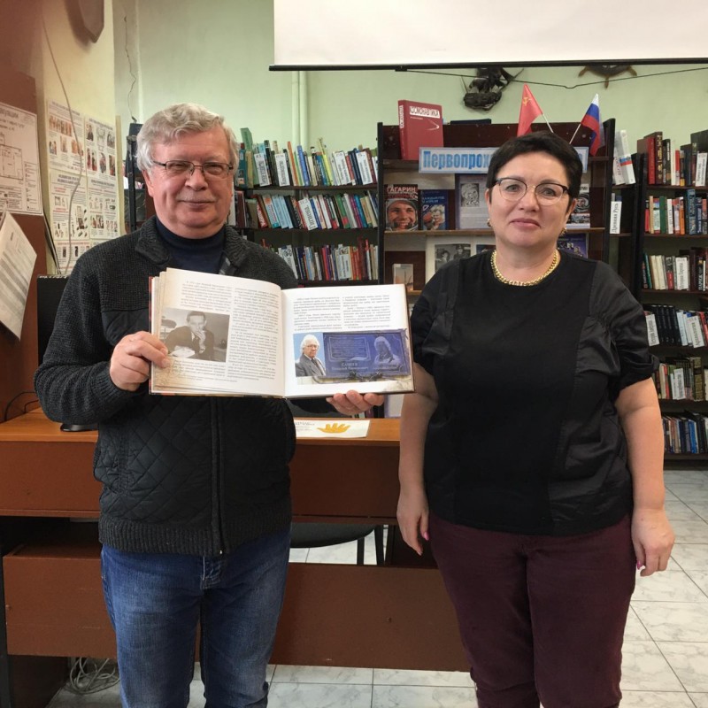 На фото писатель С.И. Вахрин и руководитель библиотеки №1 им. Н.В. Санеева С.П. Левчук